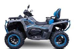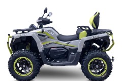 Elektryczna wyciągarka o udźwigu 3000 Ibs, elektryczne wspomaganie kierownicy EPS, w pełni regulowane amortyzatory gazowo-olejowe z oddzielnym zbiornikiem, homologowany zaczep, 14-calowe felgi aluminiowe z systemem Beadlock, markowe 26-calowe opony Bulldog, masywne przednie i tylne zderzaki, aluminiowe antypoślizgowe podnóżki kierowcy i pasażera, kompozytowe przednie i tylne uchwyty, osłony dłoni, oświetlenie Full-LED, duży 7-calowy wyświetlacz TFT, dwukolorowe pikowane siedzenie i oparcie pasażera, malowane na kolorowo wahacze i sprężyny.